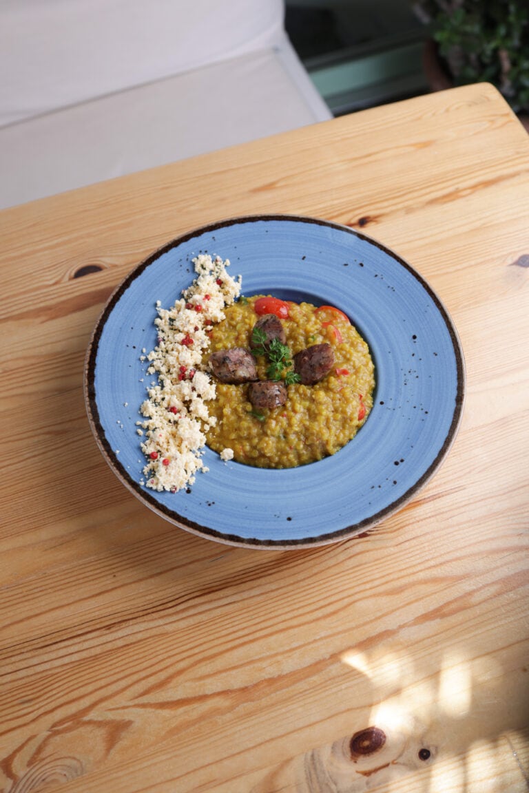 with barley rusk, mint, feta mousse and homemade tomato jam